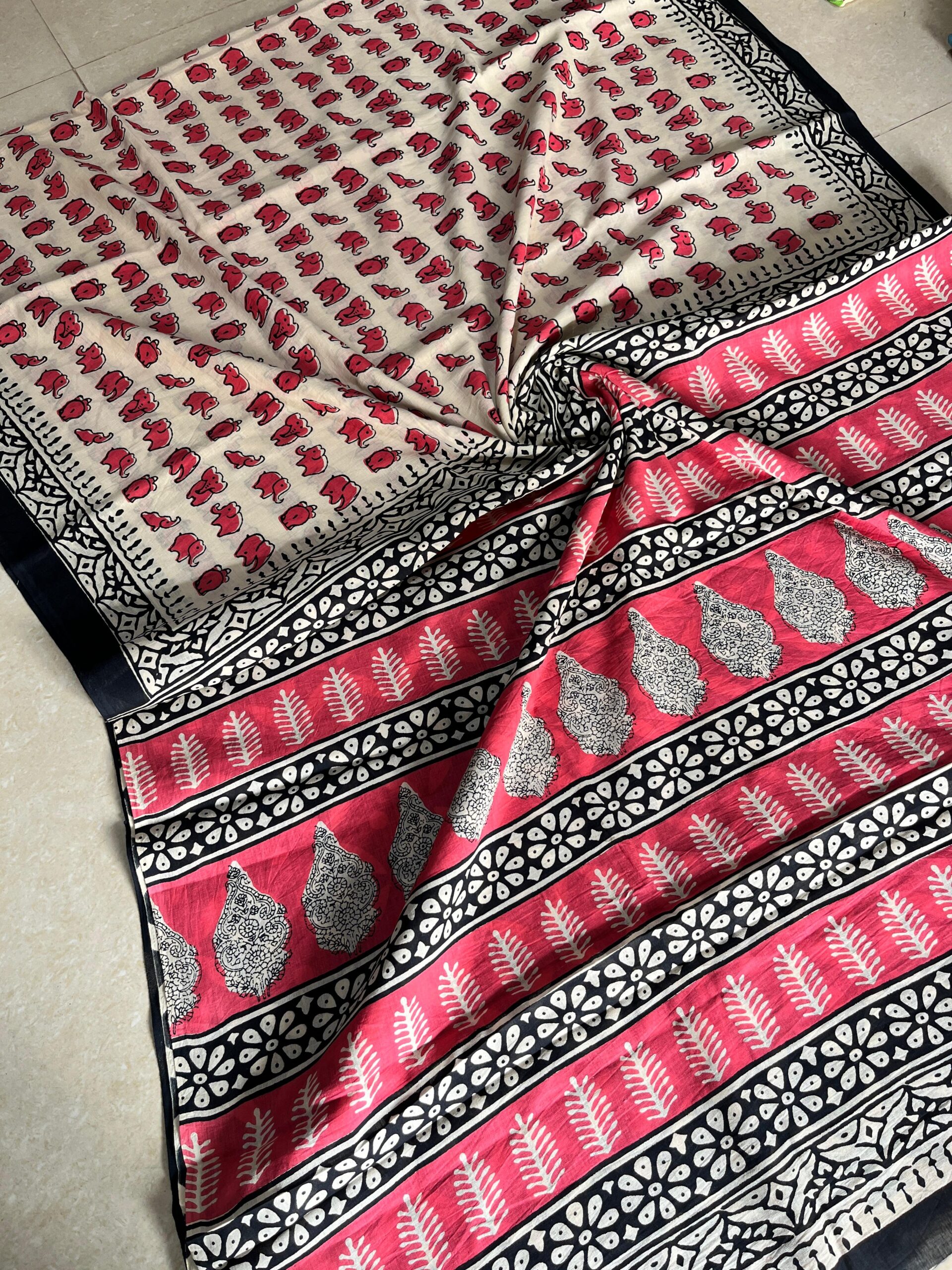 🍀Cotton mul sarees 🍀 Hand block printed cotton mul pure 92*80 super dying quality Size 6.5 with blouse Width 44 inch
